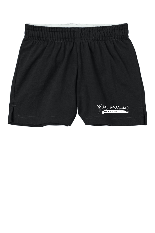 Designed for cheer, dance and other activities, this jersey knit short has a classic exposed waistband that can be worn rolled or unrolled.