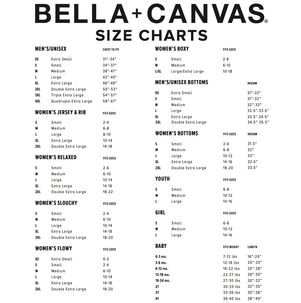 Click to view sizing chart.