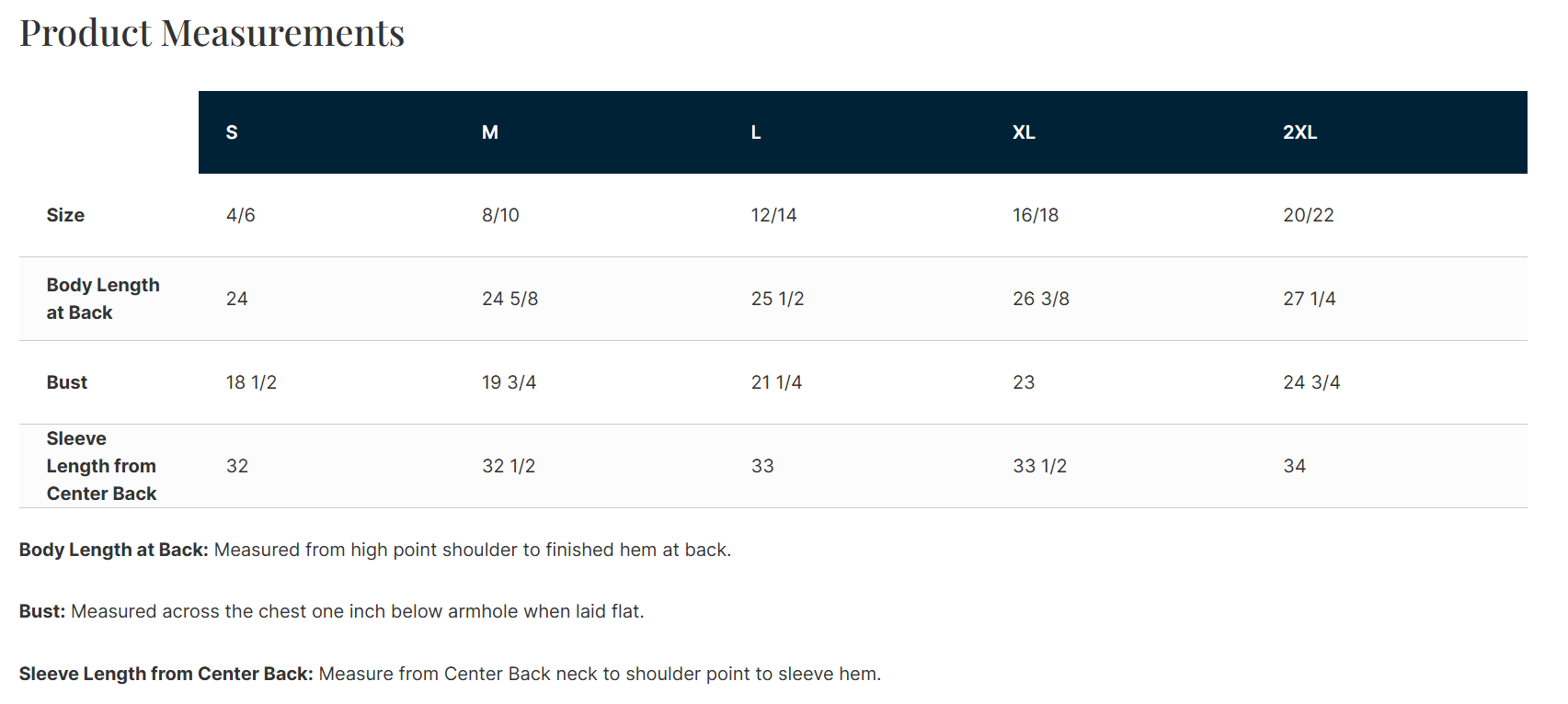 Click to view sizing chart.